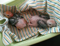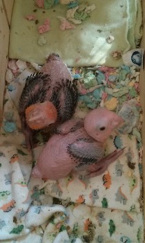 Mayzie did a great job of caring for the eggs although she and Myles fought over the first egg laid. We refer to this as "egg soccer" and the problem ends when the second egg shows up. They did this with the first clutch as well. These eggs were laid around early May and hatched the normal 28 or so days later.